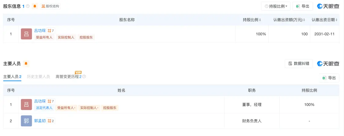 天眼查显示,月境未来 (杭州) 科技有限公司,成立于2026年,位于浙江省杭州市,是一家以从事软件和信息技术服务业为主的企业。企业注册资本100万人民币。吕功琛为该公司法人、实际控制人。