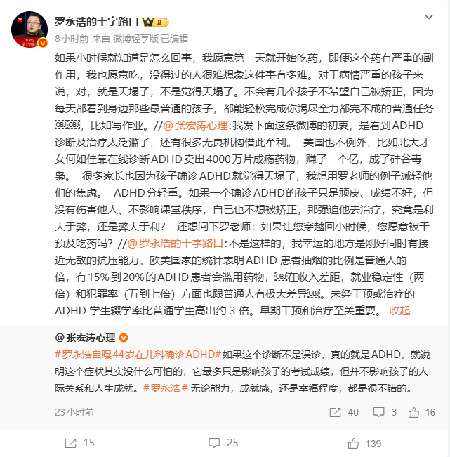 罗永浩自曝44岁在儿科确诊ADHD:很难想象有多难 严重时就是天塌了