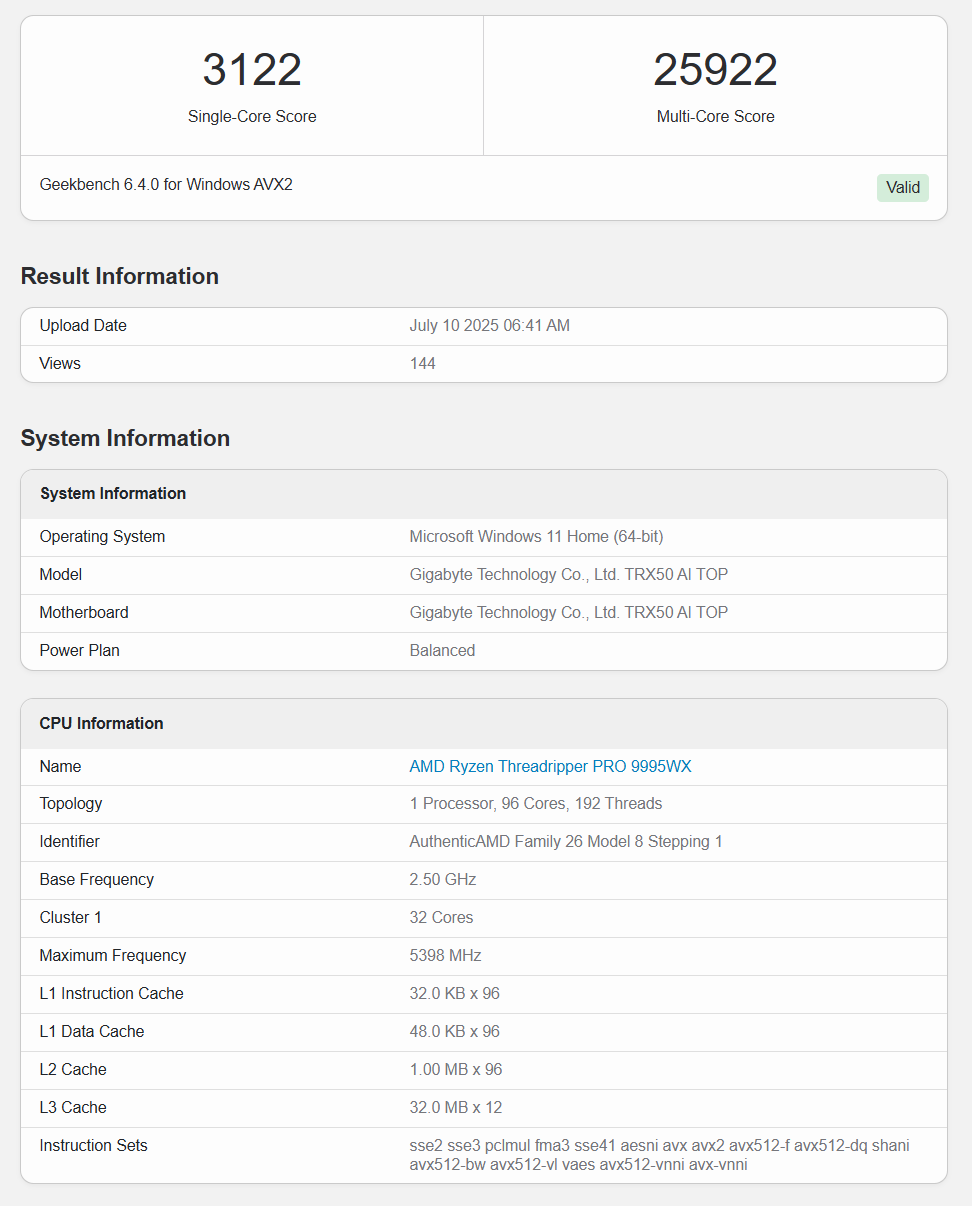 不过在整个数据库里,AMD 9995WX还有一个30170的多核跑分,无敌的存在,但大部分都没这么高,所以暂时不考虑它了。