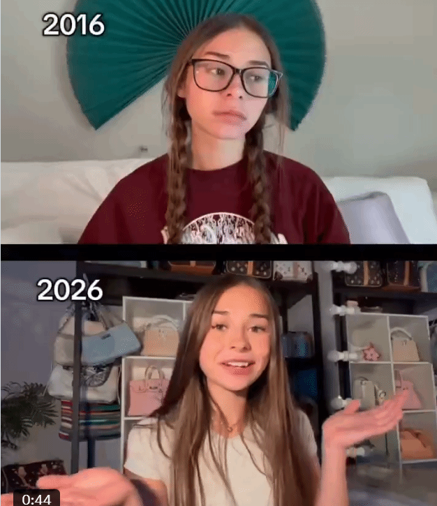 对此,现在的Rain解释道:“嗯,你高中时开始在一家餐厅打工,然后不知怎么就在网上出名了。”年轻版问她是不是美妆博主。“有点像。人们确实喜欢你的长相和性格,”Rain向年轻的自己解释道。“那我就是卡戴珊了,”年轻版回答。
