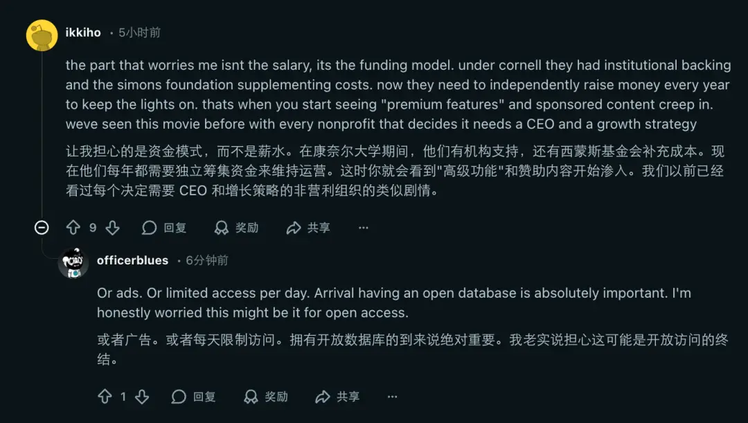 过去,arXiv 有大学和基金会兜底,现在却要独立筹资维持生计。不少网友一针见血地指出:“这通常是变味的开始。为了活下去,你很快就会看到高级付费功能(Premium Features)和赞助内容悄悄爬上页面。”