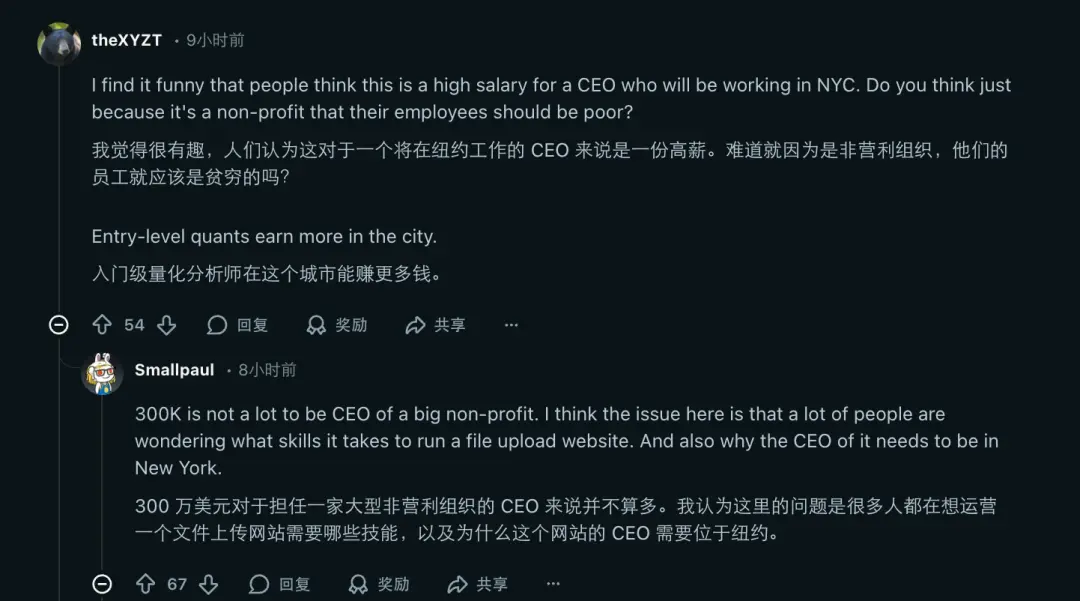 还有一部分人质疑,管理一个“仅仅是上传和下载 PDF 文件的网站”,真的需要花 30 万美元请个高管吗?不过,也有行业内人士反驳说,考虑到 CEO 需要在纽约这种地方主导一家科技类非营利组织的融资、法律和合规事务,这个薪资在当地其实算不上高。