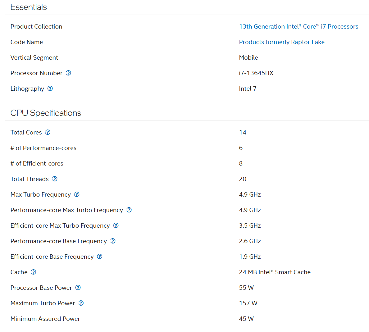 但是,酷睿i7-13645HX的规格十分诡异,反而比看似更高档的酷睿i7-13650HX还要强一些!