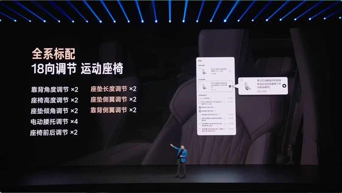 外观与座舱配置方面,新一代小米SU7车长5米、轴距3米,新增卡布里蓝、赤霞红、靛石绿三款全新配色。内饰重点提升了乘坐体验,全系标配18向调节运动座椅,支持十点式按摩,副驾升级为零重力座椅。Max版车型还标配了双分区智能调光天幕及25扬声器音响系统。