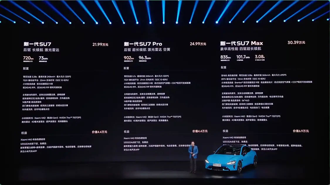 新一代小米SU7发布:底盘与智驾全面换代、最大续航超900公里 21.99万元起
