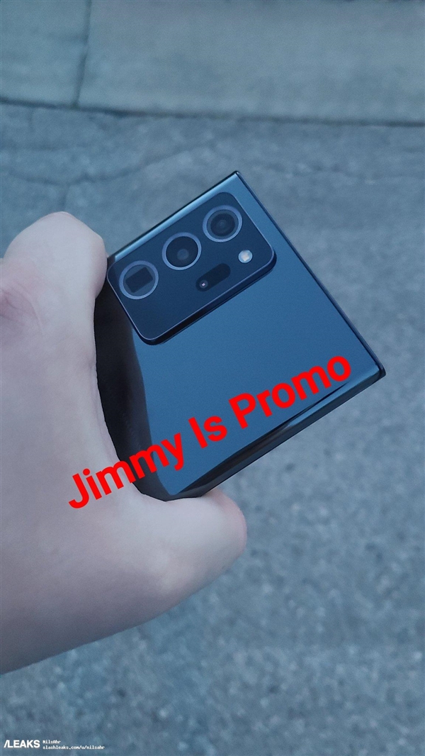 多方爆料称,三星Galaxy Note20系列手机将于8月5日正式发布。没想到,提前一个月,国外爆料人Jimmy is promo就抢先分享了Note20 Ultra的高清真机谍照。正面依然是中央开孔的曲面屏,额头未见听筒(屏幕发声?),电源键和音量键都在机身右侧。