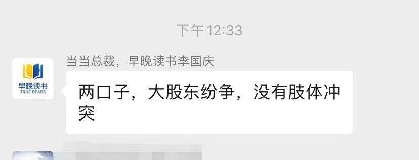 李国庆对外回应,现在当当正处于依法交接时期,他将接管当当并开始办公,希望俞渝配合交接,并表示“两口子,大股东纷争,没有肢体冲突”。