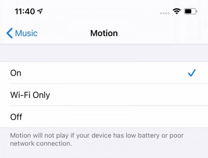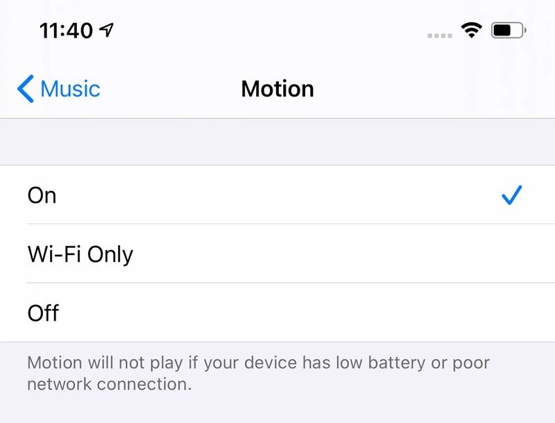 音乐应用设置允许禁用动画封面艺术。音乐应用也不再具有 "显示苹果音乐 "的切换功能。