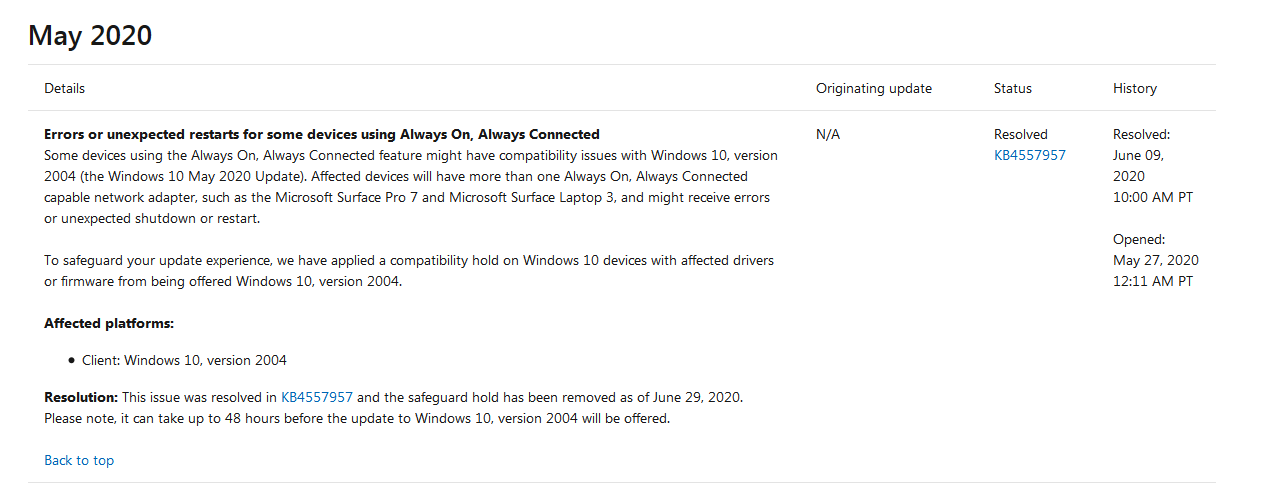 让这些设备无法升级的主要原因是,拥有多个 Always On, Always Connected 网络适配器。在今年六月的补丁星期二活动日中,微软已经修复了这个问题,在观察了一段时间之后,近日微软移除了阻止更新的限制。但依然无法升级。