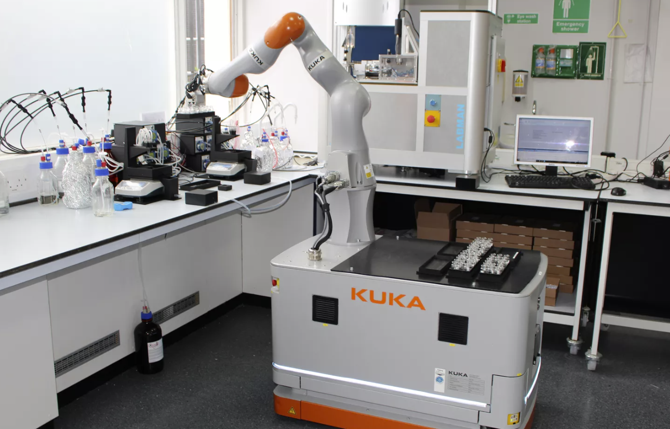 当然,机器人本身也不是没有支出。库珀说,基本的硬件成本在12.5万美元到15万美元之间,而且开发控制软件也花了三年时间。该机器使用激光雷达导航实验室,这种基于激光的技术与自动驾驶汽车相同。这意味着它可以在黑暗中操作,而且它不会因为照明条件的变化而感到困惑。它使用德国机器人公司Kuka制造的工业手臂操纵实验室设备,而且有些设备必须适应它的使用。