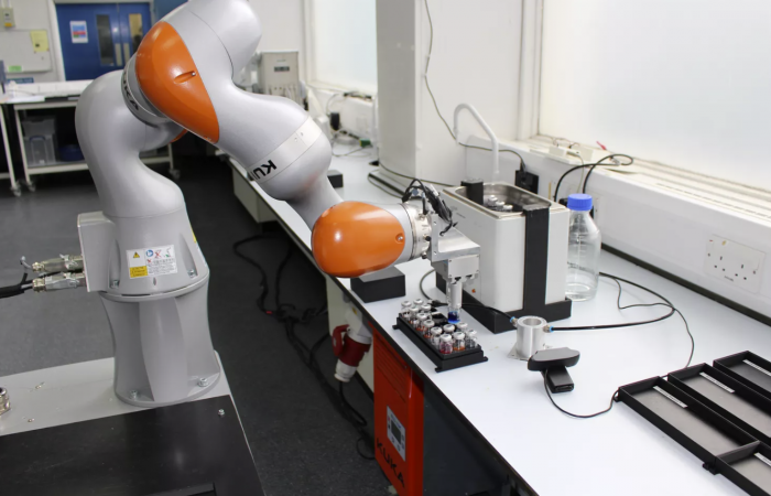得益于基于激光雷达导航传感器,该机器人甚至可以在黑暗中工作。在其展示的研究中,机器人的任务是寻找能够加快化学反应的物质,从光和水中产生氢气,这一研究领域对许多行业都有用,包括绿色能源生产。机器人被编程为实验的基本参数,但使用算法来决定如何改变10个不同的变量,如化学试剂的浓度和比例。机器人混合样品,将其暴露在光下,并分析结果。在8天的时间里,这台机器进行了688次实验,以寻找如何创造更有效的反应。它将样品混合在玻璃瓶中,将它们暴露在光下,然后用气相色谱法分析结果。
