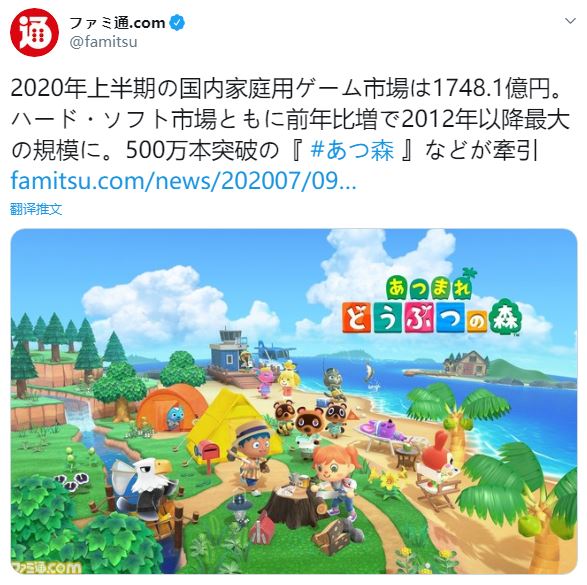 来自日媒Fami通的数据统计,在2020年上半年(2019年12月30日~ 2020年6月28日)日本家用机市场规模达到了1748.1亿日元(约合人民币113.9亿元),达到了自2012年以来的峰值,其中销量突破500万的《集合啦!动物森友会》作出不小贡献。