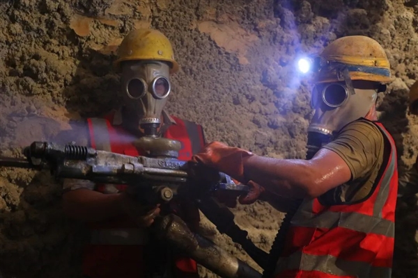 此外,隧道内还有近40℃的高温区域,工人们不得不经常顶着高温、佩戴防毒面罩施工。
