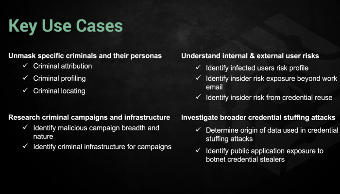 曝光的幻灯片突出了被泄露数据的一种新用途,并表明通常与商业部门相关的数据也可以被执法部门重新利用。但这也引发了执法机构是否应该利用原本被黑客窃取信息的问题。通过购买SpyCloud的产品,执法部门也将获得与任何犯罪无关人的黑客数据,绝大多数受数据泄露影响的人都不是罪犯。令人不安的是,执法部门可以简单地买到大量的账户信息,甚至是密码,而无需获得任何法律程序。