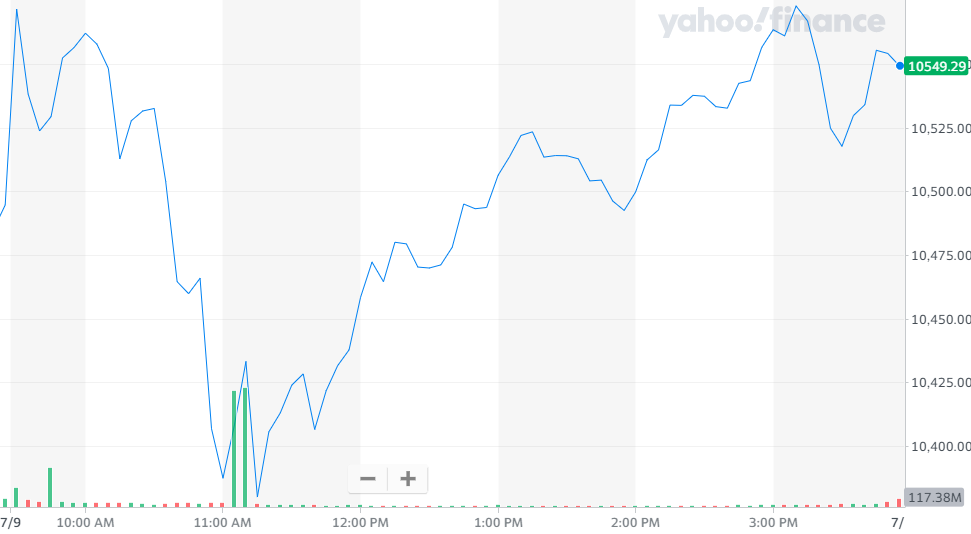 北京时间7月10日消息,星期四美股涨跌不一,投资者担心疫情反弹政府会再次实行管控措施,道指和标普500指数下跌,而可能因此受益的科技股出现上涨,FAANG均再创新高。截至收盘,道指跌361.19点,跌幅为1.39%,报收25706.09点;标普500指数跌17.89点,跌幅为0.56%,报收3152.05点;纳指涨55.25点,涨幅为0.53%,报收10547.75点。