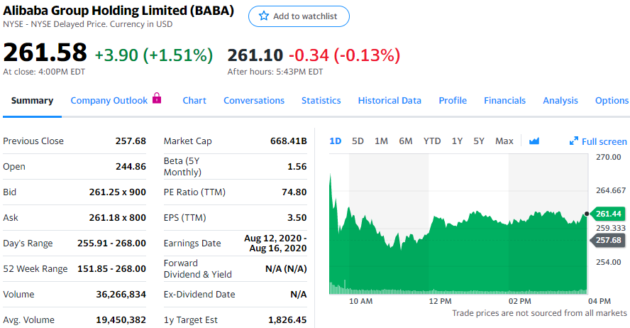 当地时间星期四,首次将阿里巴巴纳入研究范围的投资公司Needham分析师文森特·余(Vincent Yu)表示,阿里巴巴“仍将是电商市场的领头羊”,并给予其股票“买进”评级。星期四早盘,阿里巴巴股价涨幅一度达到1%。文森特·余将阿里巴巴目标股价定为275美元,并将其列入“买进清单”。虽然预计会面临竞争,但文森特·余在投资报告中称,由于加大了吸引小城市消费者的力度,阿里巴巴仍将是中国第一大电商,“阿里巴巴的优势,在于其在电商价值链中完善的生态、战略位置,以及对中国零售环境的深入了解。它的竞争优势不仅仅体现在主营业务中,也体现在线下零售、外卖和云计算等关联业务中”。文森特·余说,他认为淘宝直播是“一流的直播带货平台,电商市场正在向这种全新的销售方式转型。过去2年带货直播迅速流行起来,它向消费者提供了互动式购物体验和娱乐价值,这是传统电商购物体验所不具备的”。他认为,“淘宝直播业界领先的优势和高效的供应链,有助于2020财年商品成交总额增长逾100%。今天常规交易中,阿里巴巴股价上涨3.9美元,涨幅为1.51%,报收于261.58美元,盘中一度摸高268美元。