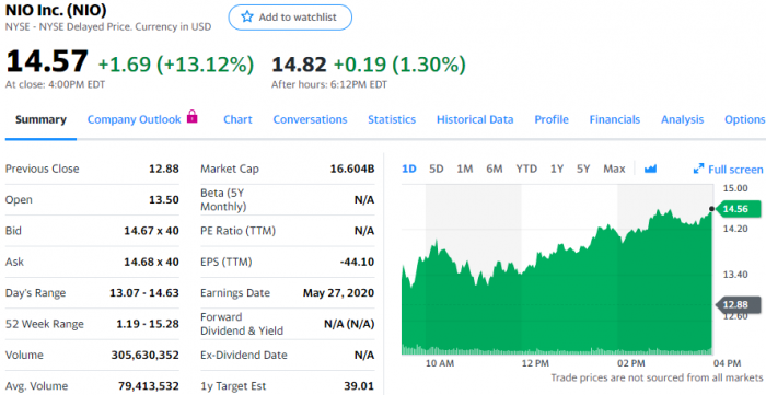 7月9日有消息称蔚来将获得国内6大银行联合授信100亿元人民币,并将于今天在合肥蔚来先进制造基地进行授信签约。对此,蔚来汽车联合创始人秦力洪没有否认。参考特斯拉此前的融资案例,该授信意味着蔚来后续可以从银行获得低息贷款。若这一消息属实并落地,这将成为蔚来汽车在今年获得的又一笔大额资金。持续的资金来源将帮助蔚来走出资金困境。融资和销量层面的利好,提升蔚来在资本市场的表现。自今年4月份以来,蔚来股价从3美元以下的低谷攀升至10美元以上。今天常规交易中,蔚来股价上涨1.69美元,涨幅为13.12%,报收于14.57美元,总市值超过166亿美元。