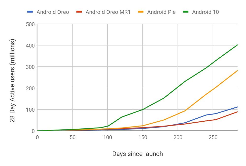 尽管谷歌已经不再公布 Android 版本的分布饼图,但今天 Android 开发者博客的最新博文中表示,Android 10 是适配率最快的 Android 版本。在发布 5 个月后,运行 Android 10 的设备数量超过 1 亿台,要比 Android 9(Pie)快 28%。