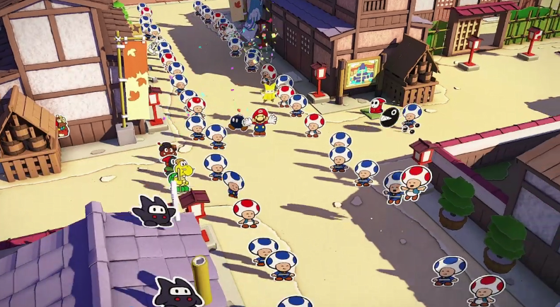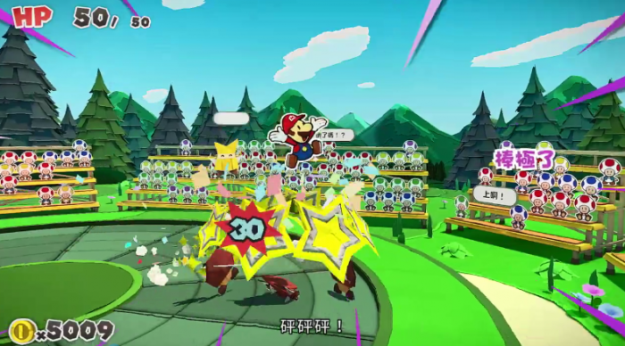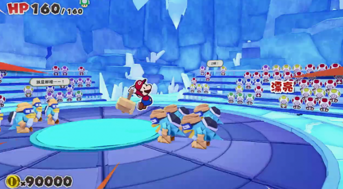 在“拼板×动作”的新系统中和袭击马里奥的折纸兵战斗。敌人会从360度席卷而来,确实转动、排列、一鼓作气打倒敌人吧!
