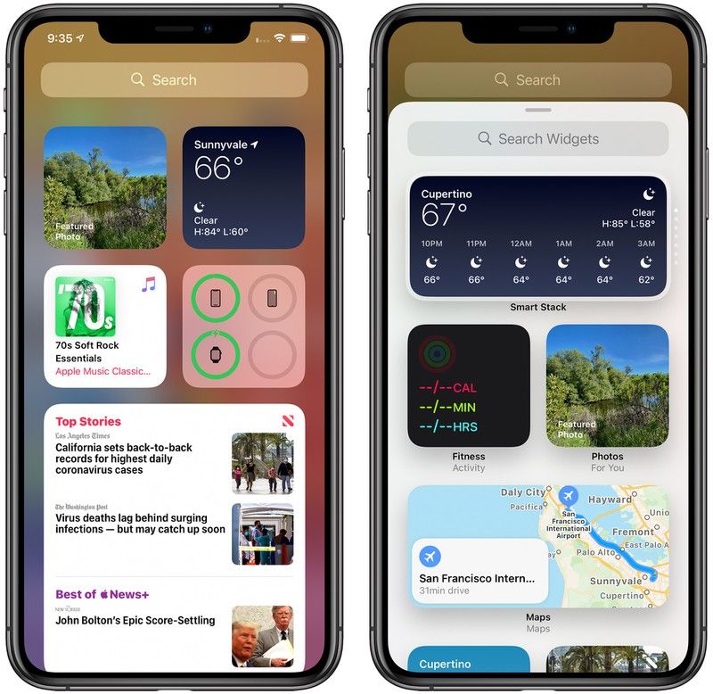 苹果对所有的小部件进行了全面的改革,引入了全新的设计,使用更少的透明度、更多的间距和更丰富的内容,使小部件更加实用。实施重新设计之后,小部件首次可以从 "今日视图 "中移出,直接进入主屏幕。