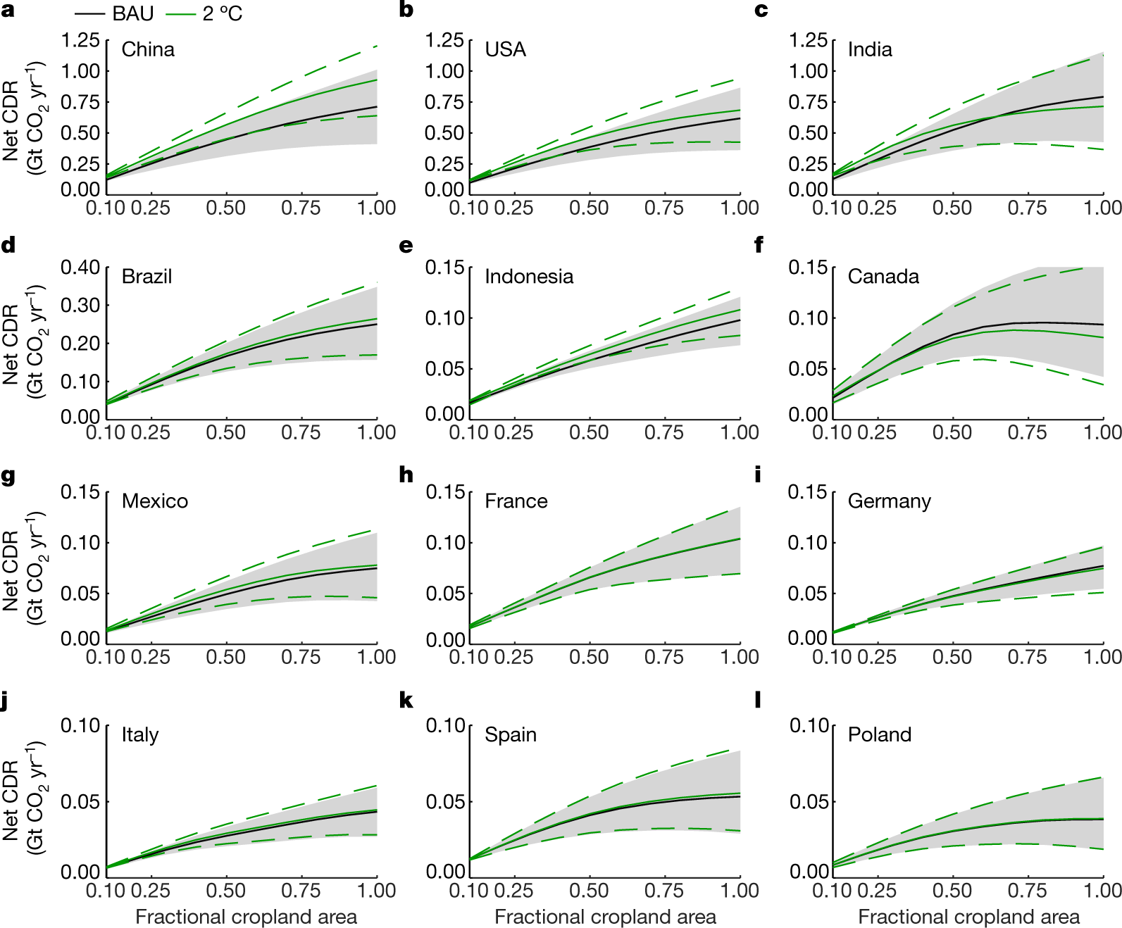 谢菲尔德大学的研究小组已经完成了它所说的第一次逐个国家的评估,即如果将这种技术应用于世界上的农田,可以实现二氧化碳的减排。为此,研究人员开发了一个模型,该模型考虑了各国不同的二氧化碳去除潜力,以及所涉及的成本。
