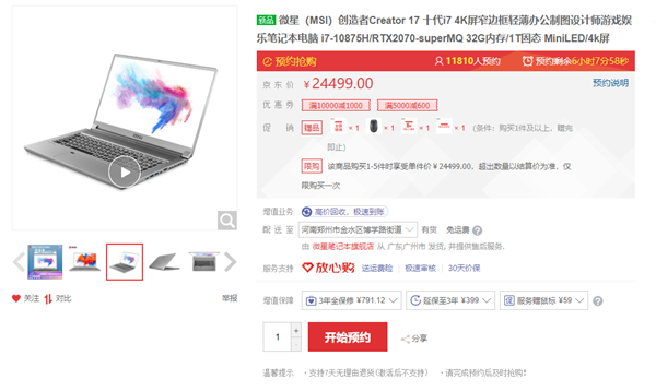 微星创造者17笔记本现已开启预约,今晚0点正式开卖,官方定价24499元,首发优惠价23499元,赠送全国联保和2年上门服务、无线鼠标、运费险。