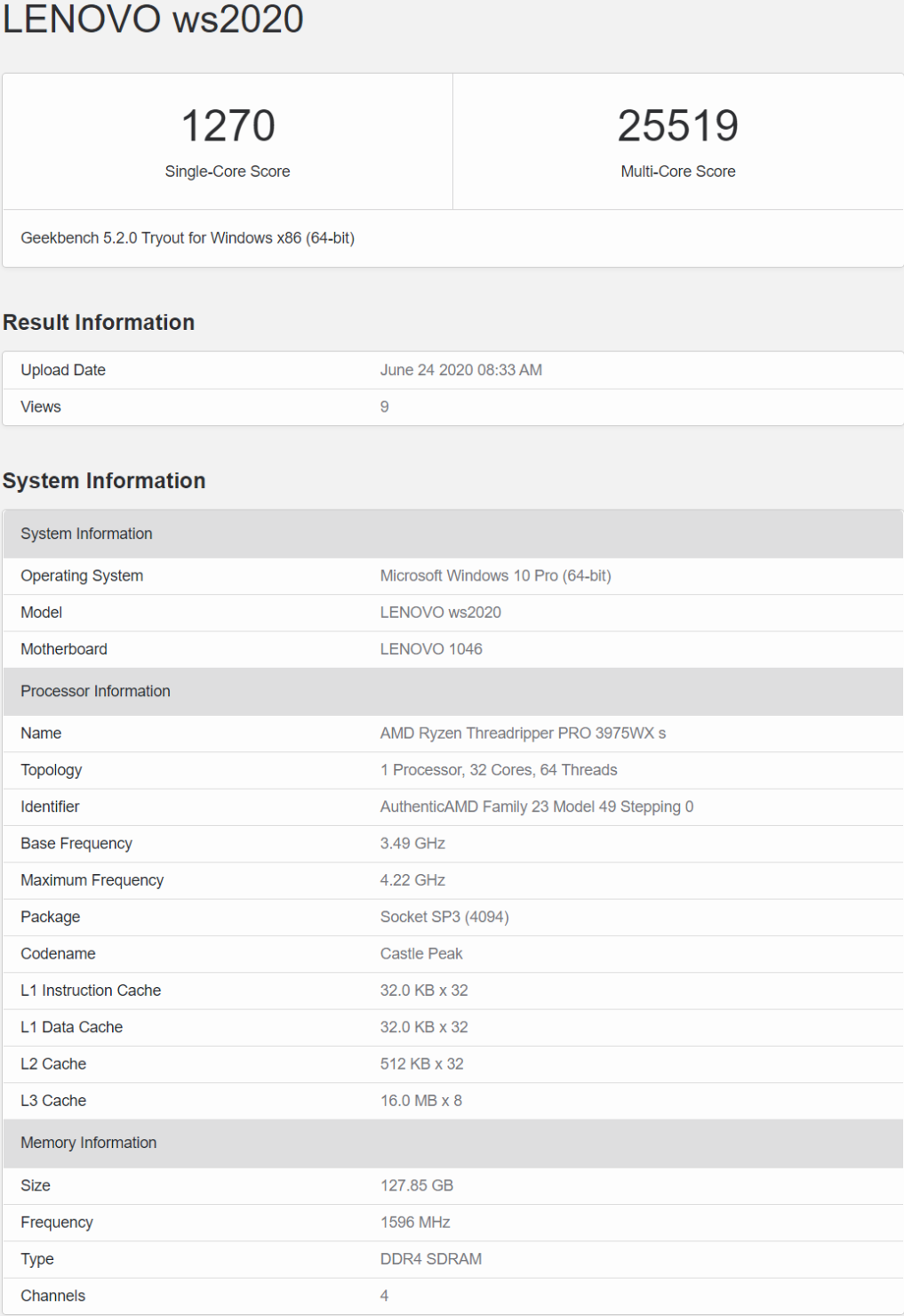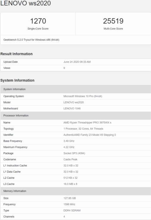 至于该芯片所搭载的平台,包括SP3插座主板和128GB的DDR4内存。该系统属于联想wS2020系列,可能是联想将推出的新系列工作站。事实上,联想已经预告了7月14日的重大发布活动,这也是传闻中Threadripper PRO家族产品的发布日期。出乎意料的是,清单中只提到了4个通道(2DPC)。我们很可能会看到来自OEM厂商不同价位的四通道和八通道工作站,但这还有待确认。
