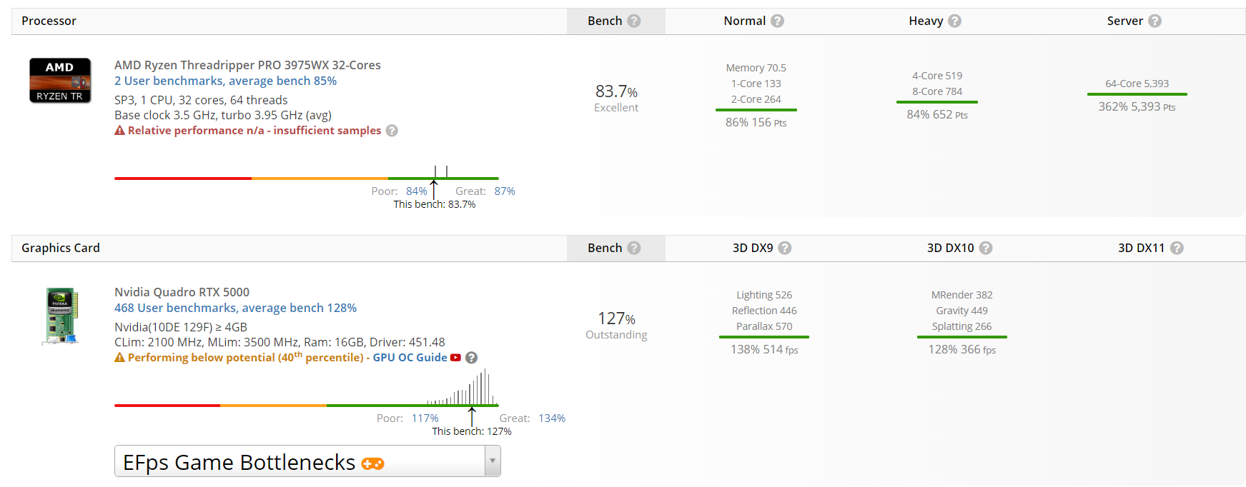 在纯性能方面,AMD Ryzen Threadripper PRO 3975WX在单核测试中最高得分为1270分,多核测试中最高得分为25519分。相比之下,Ryzen Threadripper 3970X在单核测试中的得分在1350分左右,多核测试中的得分在27000-2800分左右。这纯粹是由于Pro系列产品较低的时钟速度所致。AMD Ryzen Threadripper 3970X运行速度要高得多,具有3.7GHz基础时钟频率和4.5GHz提升时钟频率。