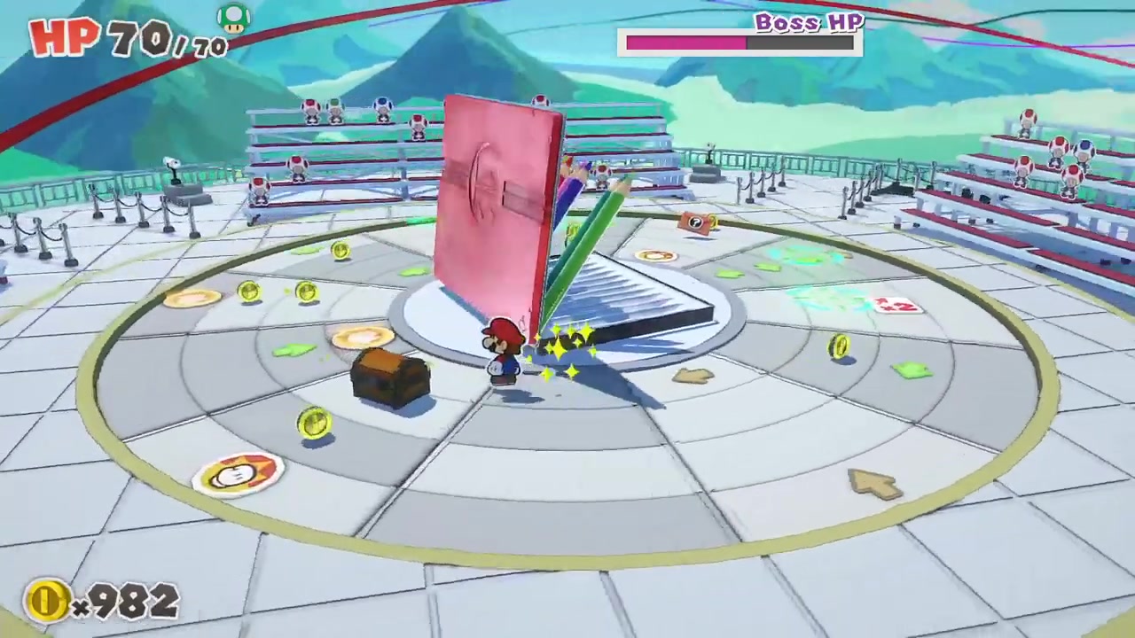 在“拼板×动作”的新系统中和袭击马里奥的折纸兵战斗。敌人会从360度席卷而来,确实转动、排列、一鼓作气打倒敌人吧!