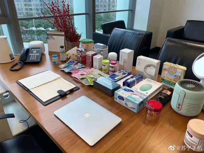 桌子上已经摆满了即将直播带货的产品,其中可以看到一部iQOO手机,应该是最新的vivo iQOO Z1x,这款5G手机起售价仅1798元,配备6.57英寸屏幕,支持120Hz高刷新率,后置4800万AI三摄,电池容量5000mAh,并支持33W闪充。