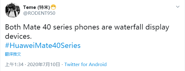 根据往年惯例,华为将在今年9月份发布最新款的旗舰智能手机Mate40系列,现在举例发布时间仅有两个月,不少爆料信息已经在网上传播。近日消息,知名国外爆料达人@Teme曝光了Mate 40的贴膜。以往华为Mate系列只有Pro版是曲面屏设计,而标准版为直屏。而在@Teme的爆料中,华为Mate 40标准也采用了曲面屏的设计。