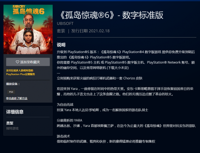 根据预告片,《孤岛惊魂6》将于2021年2月18日发售,登陆PS5,XSX,PS4,Xbox One,PC(Epic),Uplay和Stadia。和《刺客信条:英灵殿》一样,PC版依旧没有Steam。