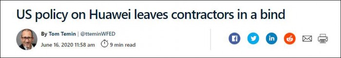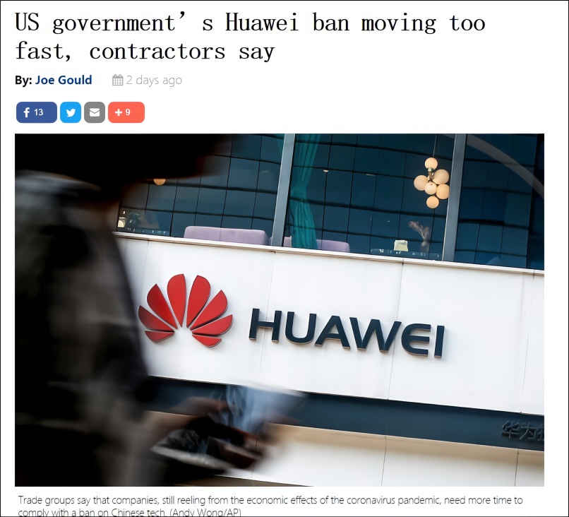 报道截图:美国对华为的政策使美国政府的承包商企业陷入困境