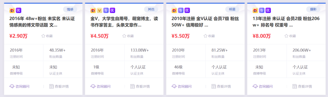 通过这个渠道,那些有一定体量的微博账号,实现了账号买卖。
