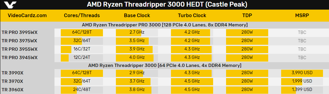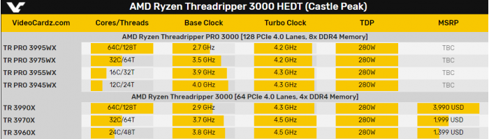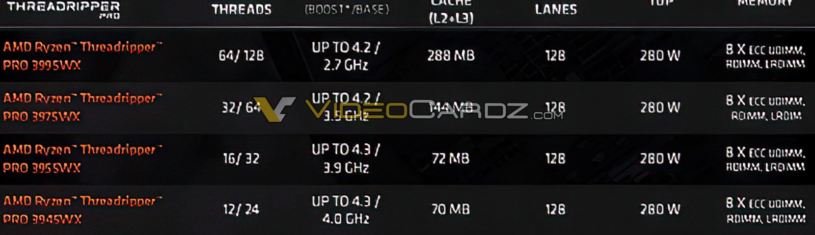 AMD的第一个线程撕裂者PRO系列已经基本没有什么秘密了。VideoCardz今天披露了线程撕裂者PRO系列的全部型号、规格,比现有的线程撕裂者系列高出不少,已经基本摸到了霄龙系列。