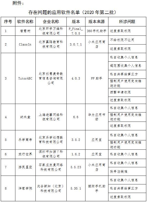 过了不到两个月,7 月 3 日,工信部就公布了 2020 年第二批侵害用户权益行为的 App 名单,主要包括智慧树、纳米盒、悟饭游戏厅等 15 款 App。