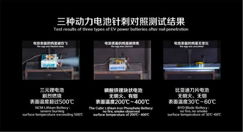 比亚迪刀片电池被针刺后无明火无烟