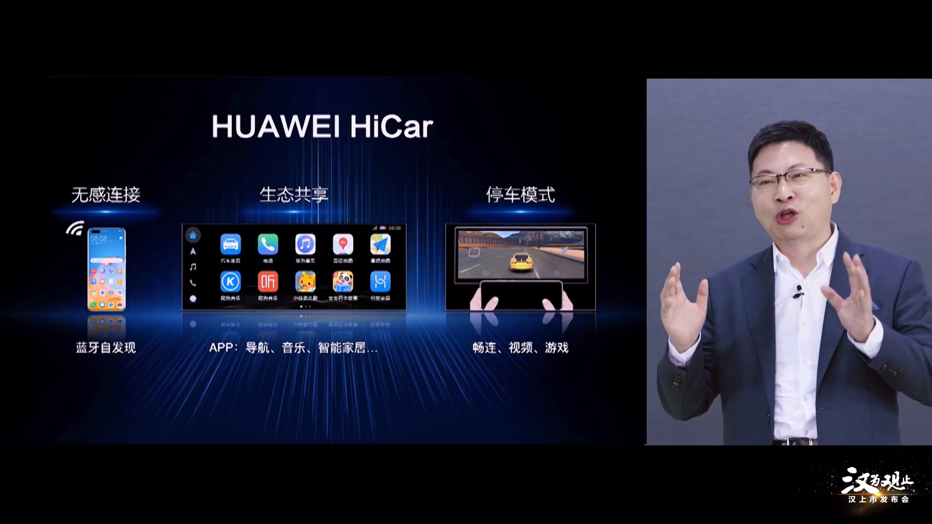 在比亚迪汉的上市发布会现场,华为消费者业务CEO余承东也作为特约嘉宾亮相。余承东表示,比亚迪汉搭载的华为HiCar解决方案,能够将百万级的手机应用带入智能汽车中,相较苹果CarPlay更为丰富;并且,比亚迪汉将应用全球首发NSA/NA车规级5G通信模组;而华为手机也能够充当NFC钥匙,即使在手机没电的情况下,也能够解锁比亚迪汉的车门。