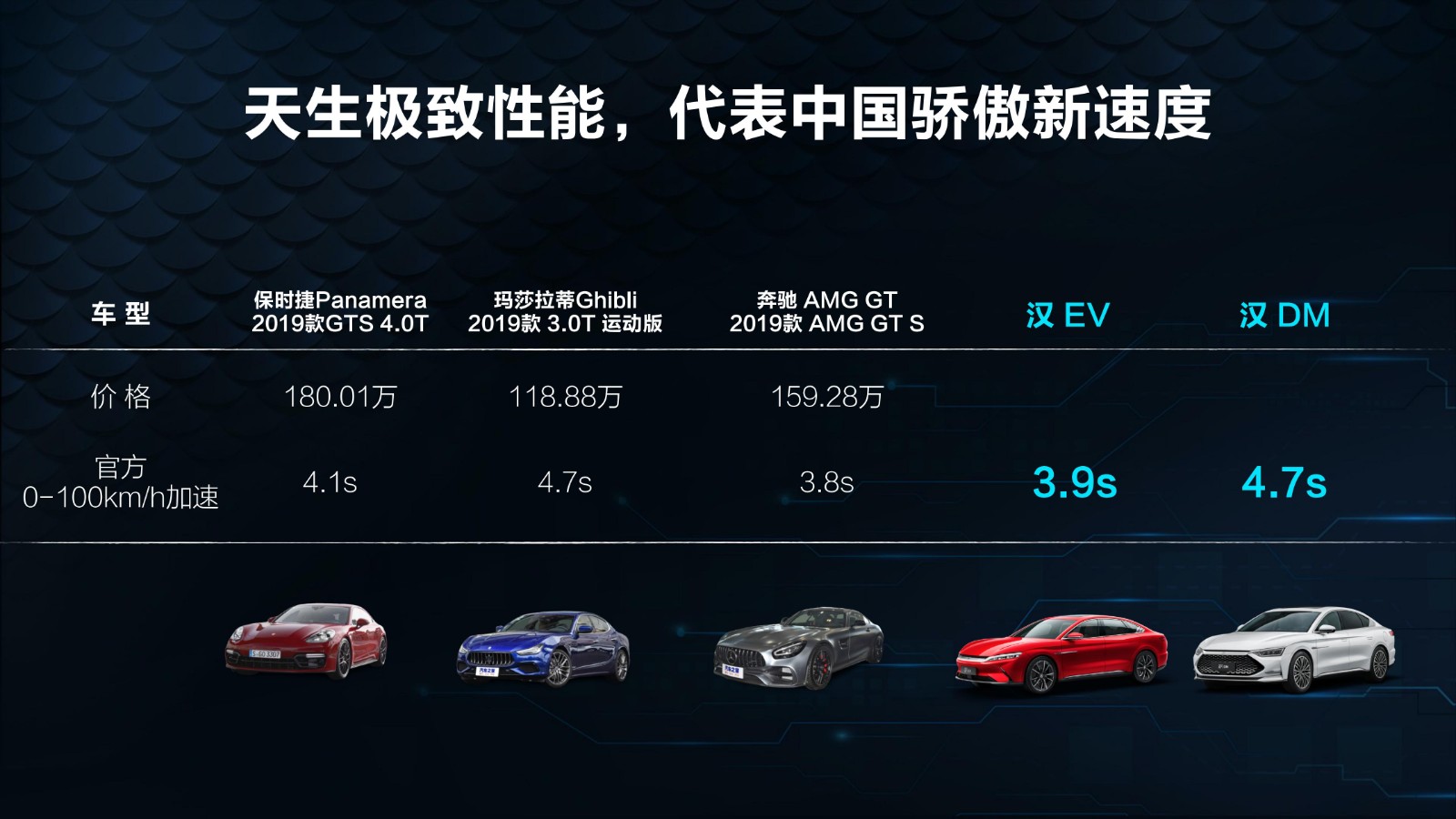 比亚迪汉的加速成绩与国际豪华品牌轿车对比