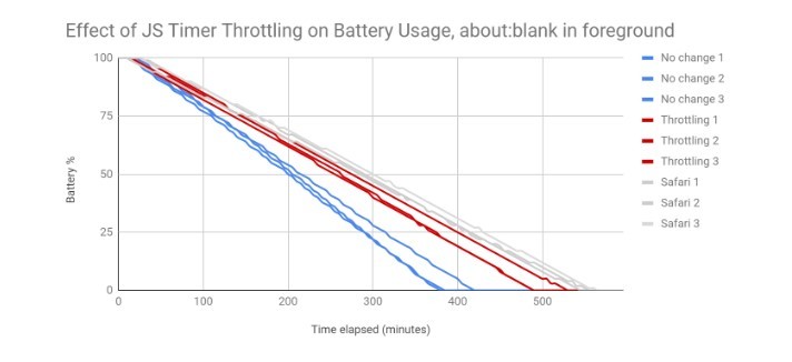 谷歌实验室的测试发现,在打开37个标签(1个活动、36个后台)的情况下,该特性使得电池续航延长了两小时。