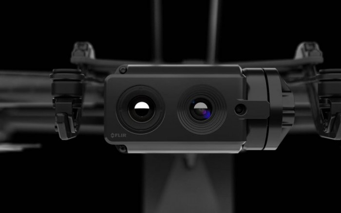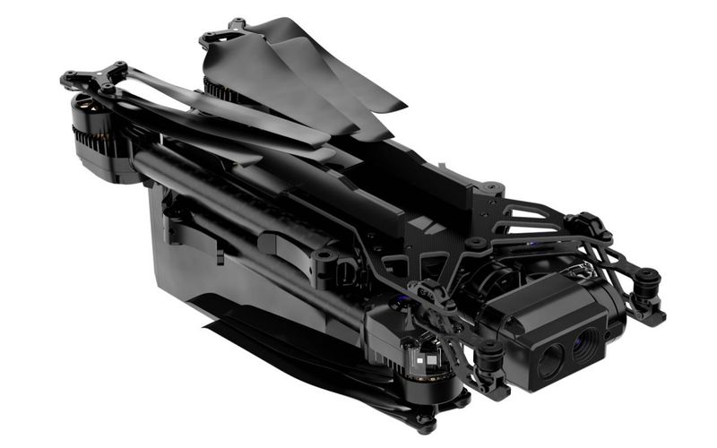 Skydio X2 正面装备了一个 1200 万像素的彩色摄像头,同时还有一个 320×256 分辨率的 FLIR Boson 热像仪,用于查看热量。它们安装在一个 180 度的万向节上。彩色相机提供了 Skydio 称之为 360 超级变焦的功能,它将 7 个机载摄像头(其中6个用于导航)与主摄像头结合起来,实现 360 度实景拍摄,支持 100 倍变焦和电子防抖。