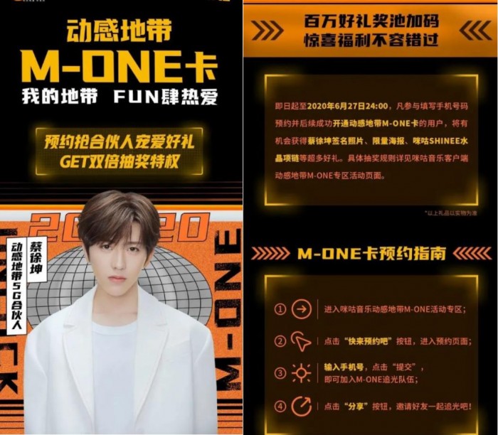 6月28日,中国移动正式发行动感地带M-ONE卡,蔡徐坤担任动感地带5G合伙人。中国移动表示称,作为动感地带焕新升级后的明星联名卡,M-ONE卡将创新延续品牌精神,为用户提供全场景沉浸式的音娱内容服务、明星深度参与定制的独家专属权益体验,引领“Z世代”用户全新生活方式。