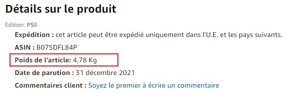 随着各个地区亚马逊PS5预订页面的出现,PS5的一些详细的参数信息也渐渐浮出水面。据法国亚马逊显示,PS5主机的重量达到了4.78公斤,接近10斤。意味着PS5主机不仅比PS4(2.8Kg)重了快2公斤,也比方头方脑、类似ITX机箱形态的Xbox Series X(4.45公斤)重。