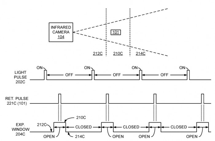 苹果建议,光源可以是垂直腔面发光激光器(VCSEL),但更有趣的版本是其使用了近红外光。此外,还采用了一个摄像头来创建一个监控区域的视频信号,在后一种情况下,这个摄像头可能是一个红外摄像头。这两个版本都会依靠定时电路向环境中发射光脉冲,然后从附近的物体上反射出来,再返回到摄像机上。简而言之,通过测量光脉冲返回相机所需的时间,测距电路可以计算出检测到的物体有多远,其结果可以提供给其他用于自动驾驶的计算系统。