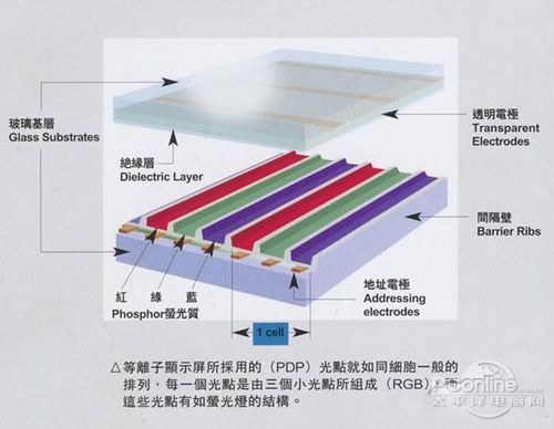等离子电视从技术上来讲,可以说是当时显示面板行业的金字塔。它采用气体放电原理,依靠RGB三原色荧光粉发光,每一个像素都是一个主动发光单元,在发光单元内部实现256级灰度后再进行混色,最终显示出正确的色彩。