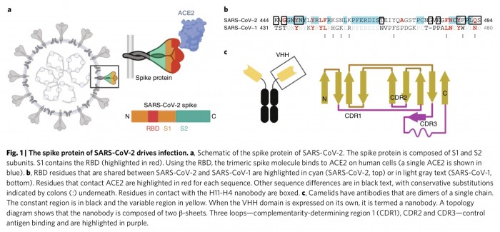 研究指出,纳米抗体体积小且稳定,制备简单,因此常被用来替代诊断和成像用的传统抗体。目前正在开发能作为SARS-CoV-2研究工具和潜在治疗药物的纳米抗体。