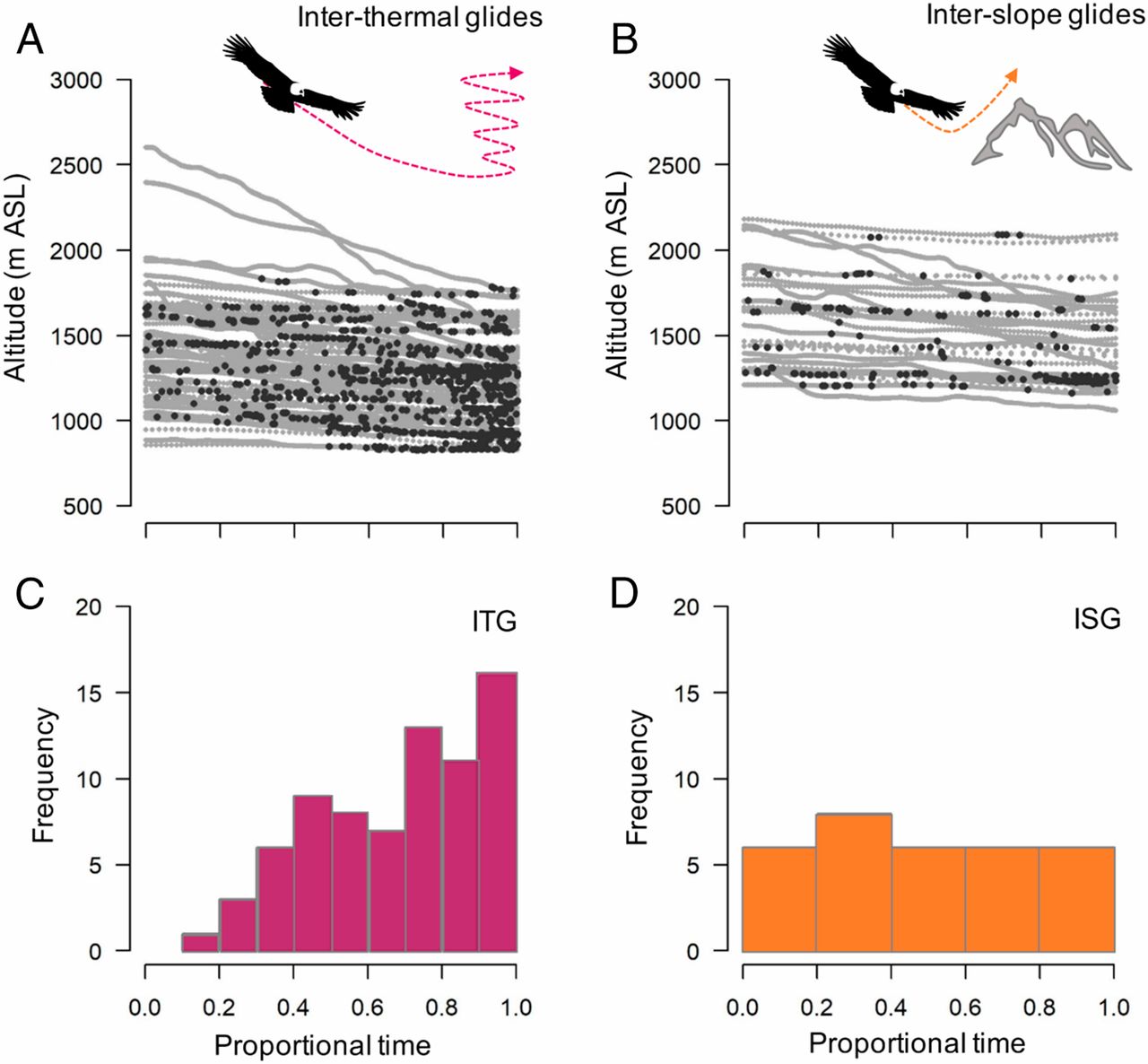这项研究已于周一发表在《美国国家科学院院刊》上。研究人员发现安第斯秃鹰只在约1%的飞行时间内扇动翅膀。其中大部分发生在起飞和接近地面飞行时。秃鹰的翱翔耐力令人印象深刻,但这些沉重的鸟类在拍打翅膀上消耗能量时,必须选择战斗。