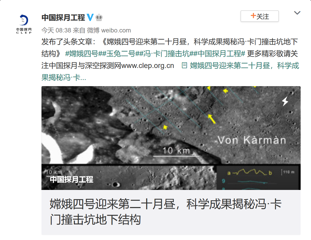 通过分析嫦娥四号雷达数据,发现着陆区一带多层地下结构,并结合仿真模型和相关地质分析,进一步证实冯•卡门撞击坑内部发生过多期岩浆填充事件。