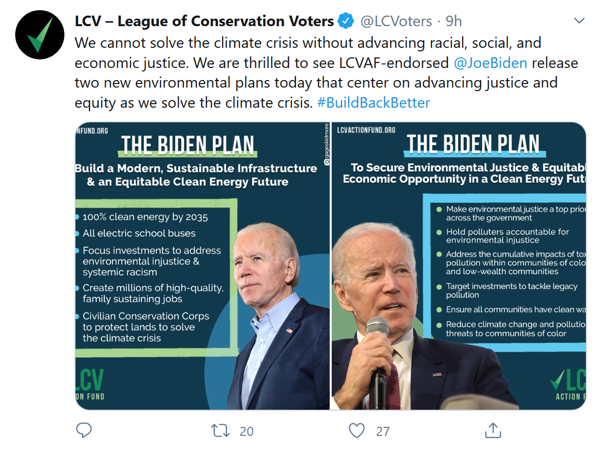 除了新的清洁能源计划,拜登还推出了一项单独的计划以此来解决污染和气候变化造成的差距。该计划指出:“任何健全的能源和环境政策都必须促进农村、城市和郊区所有美国人的公共健康和经济机会并认识到有色人种社区和低收入社区几十年来都面临着气候变化和环境污染物造成的不成比例的损害。”