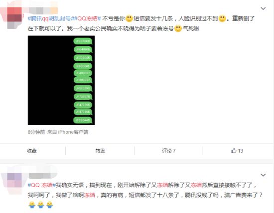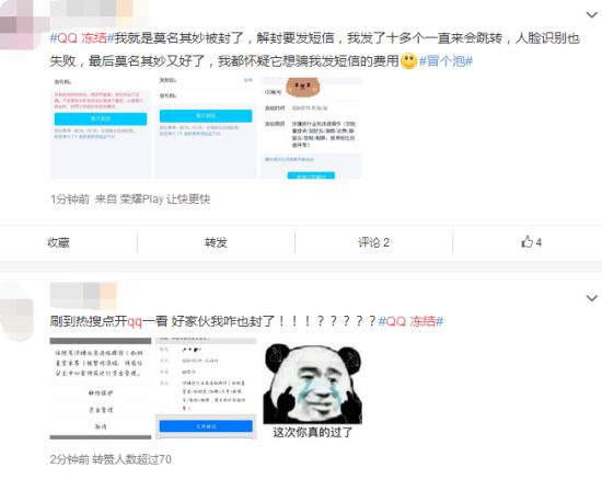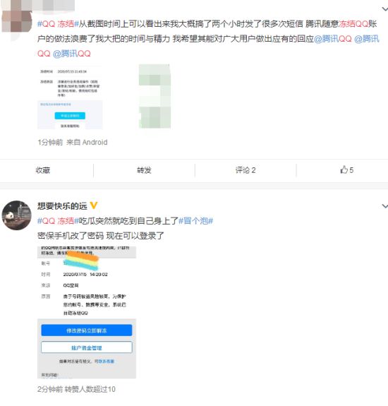 今日,“QQ冻结”话题登顶微博热搜。点进话题可以看到,有大量网友都发微博称,自己的QQ账号在今日上午被无故冻结,冻结理由为违规业务行为。有网友在冻结期间通过多种方式解冻未果,截至发稿时已经有部分网友在微博反馈冻结已解除。